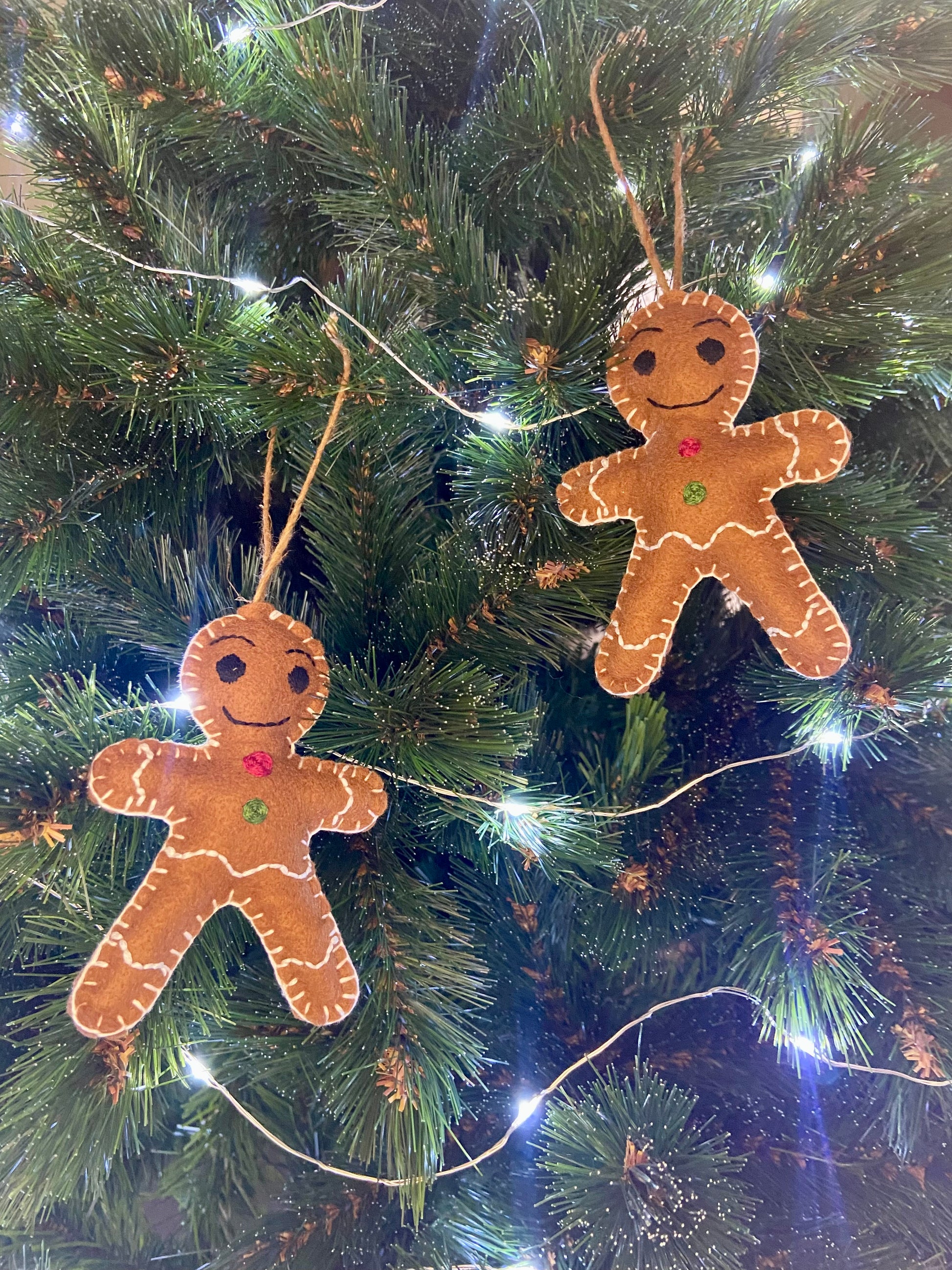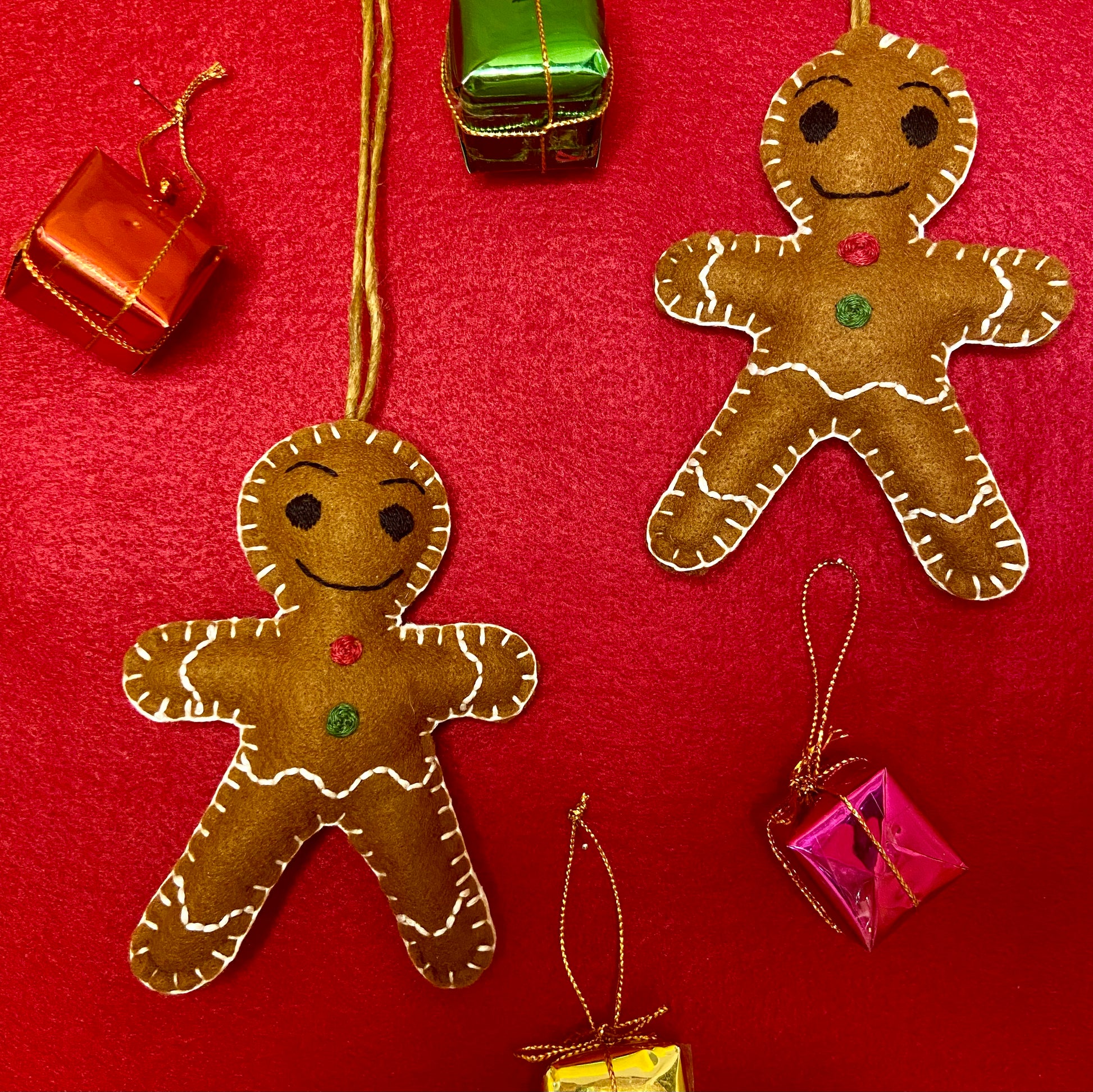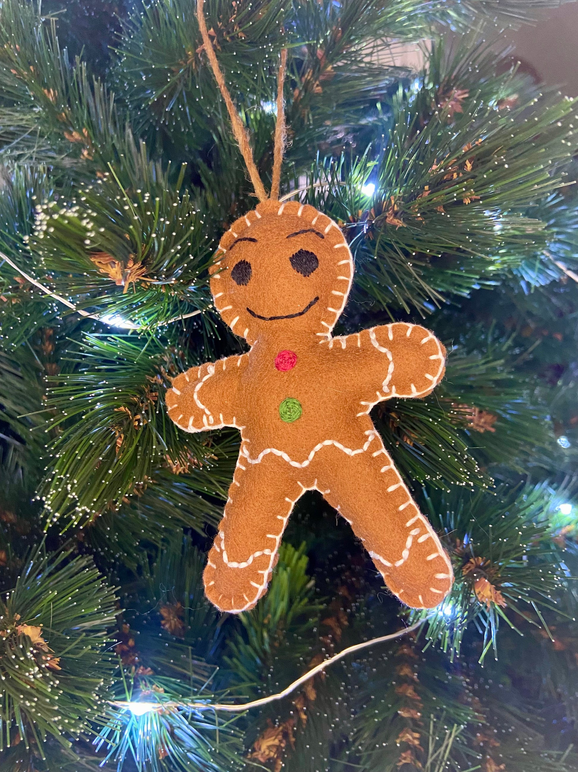Un bonhomme pain d’épices tout doux et brodé main, pour une touche de tendresse et de tradition dans ton sapin de Noël.